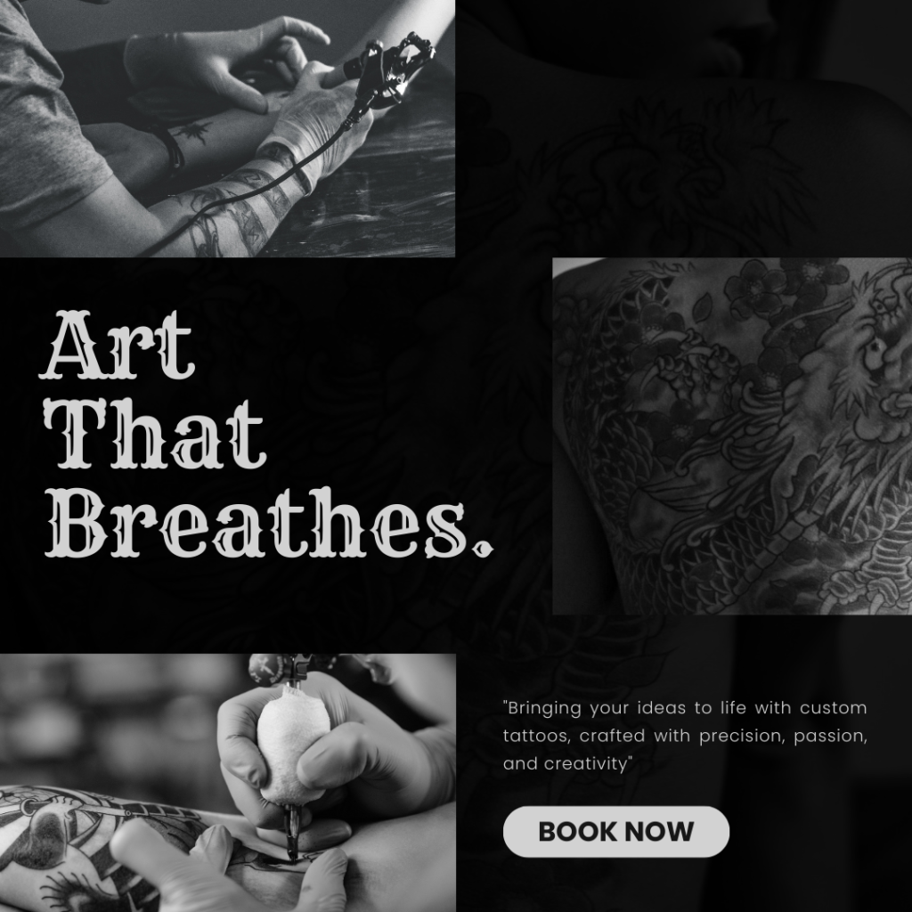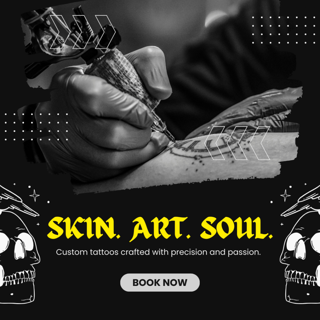 Our team of skilled tattoo artists specializes in custom tattoos, realism, traditional, minimal, portrait, lettering, and cover‑up tattoos. Every design is crafted to reflect your personality and individuality.